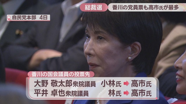 【自民党総裁選】岡山県の国会議員2人が高市氏、3人が小泉氏に投票 党員・党友票は高市氏が最多