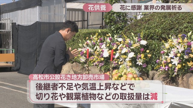 花への感謝と業界の発展祈り…高松市の市場で「花供養」 生産者や卸売業者ら約30人が献花