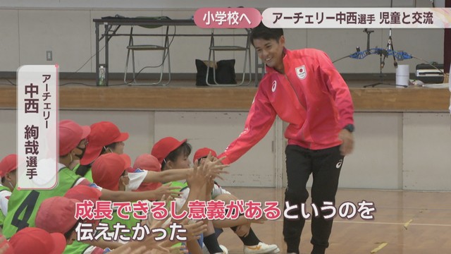 岡山市出身のオリンピアン アーチェリー・中西絢哉選手が小学生と交流