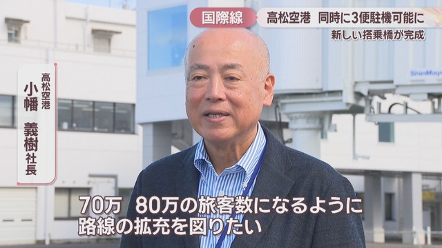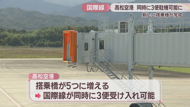 高松空港に新しい搭乗橋が完成 国際線が3便同時に駐機可能に