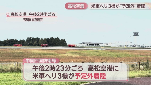 米軍ヘリ3機が予定外着陸 防衛局が現地で原因を調査中 高松空港・香川