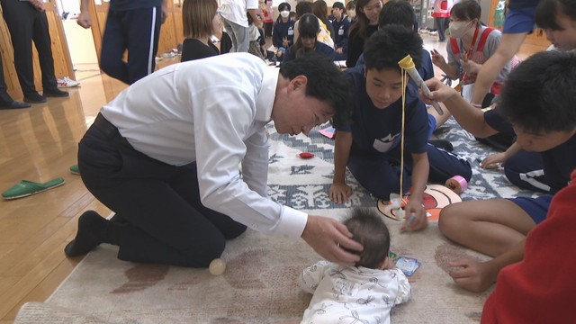 中学生が赤ちゃんとふれあい 岡山県知事も視察 高梁市