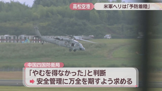高松空港に着陸したアメリカ海軍所属のヘリコプター 16日