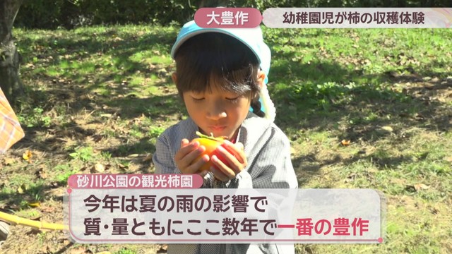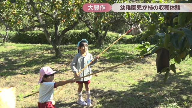ここ数年で一番の豊作!幼稚園児が柿の収穫を体験「あまくておいしかった」 岡山・総社市