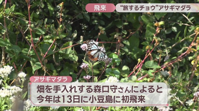 香川・小豆島町に飛来したアサギマダラ 27日