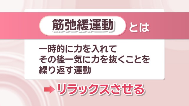 最初は、寝る前に体をリラックスさせるような「筋弛緩運動」がおすすめです。筋弛緩運動とは一時的に力を入れ、その後に一気に力を抜くことを繰り返す運動です。