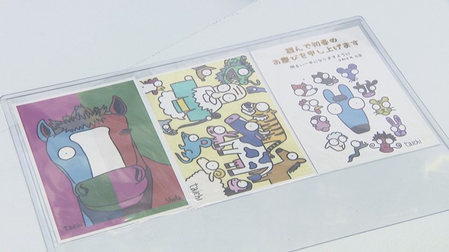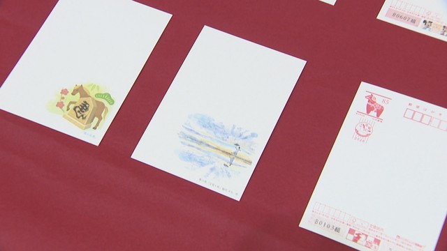 年賀はがきを20枚以上購入した先着50人に、2人がデザインしたポストカードが贈られました。
