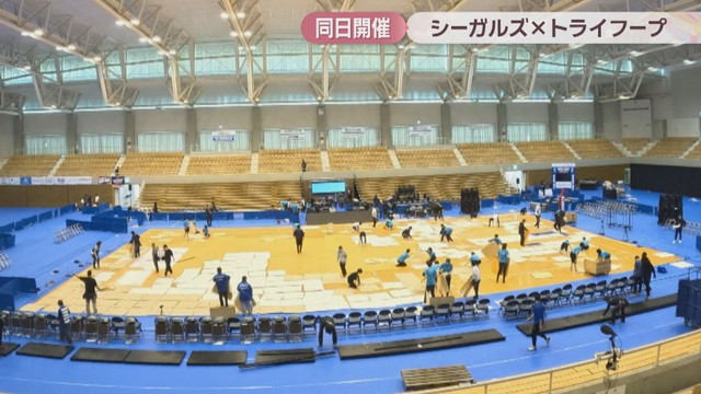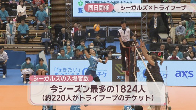 バレーボールSVリーグ女子の岡山シーガルズとバスケットボールB3のトライフープ岡山が初めて同じ日・同じ会場で試合を開催し、多くの観客でにぎわいました。