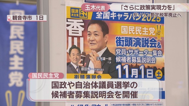 ガソリン税に上乗せされている「暫定税率」を2025年12月末に廃止することで与野党6党が合意しました。国民民主党の玉木雄一郎代表が11月1日、地元・香川で街頭に立ち、4年前から公約に掲げていた政策の実現を報告しました。