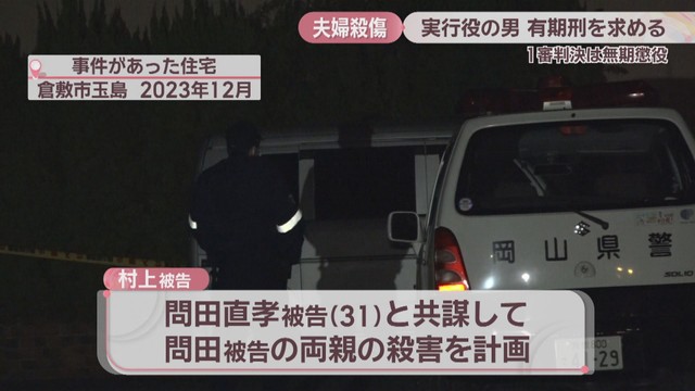 2023年12月、倉敷市玉島の住宅で夫婦が殺傷された事件で、実行役として無期懲役の判決を受けた男の控訴審が5日、始まりました。被告側は改めて「有期刑が相当」と主張しました。