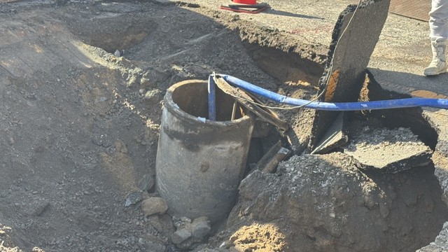 運転していた70代の男性が「車が落ち込んだ」と警察に通報。警察が駆け付けたところ、ごみ収集車の車両の後ろ半分が穴に落ち、前輪が浮いた状態になっていたということです。穴の大きさは、直径約3m、深さは約1.5mほどとみられています。