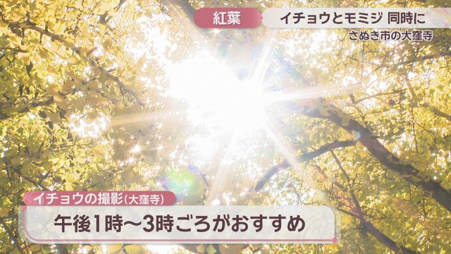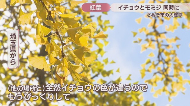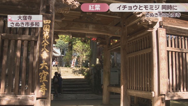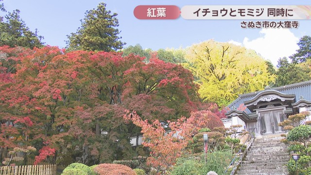 朝晩、冷え込む日が増えてきました。香川県さぬき市の寺では、イチョウとモミジの紅葉を同時に楽しめます。