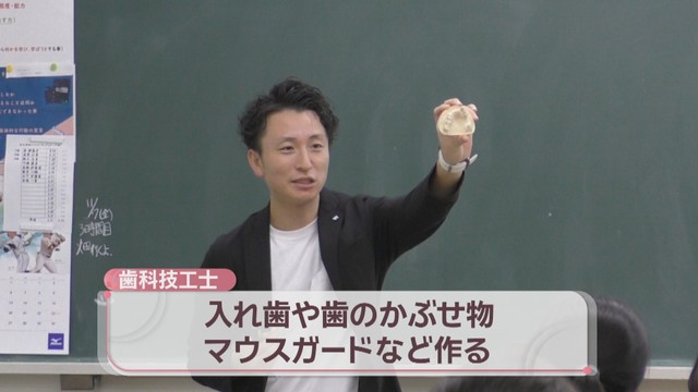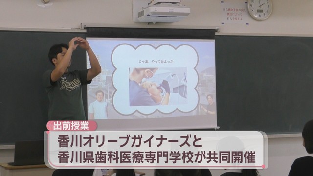 香川オリーブガイナーズと香川県歯科医療専門学校が、スポーツを支える歯科技工士の仕事について生徒に知ってほしいと共同で授業を行いました。