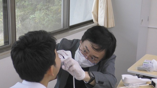 生徒たちは歯型をとる歯のスキャンを体験し、マウスガードをつくる工程を学びました。