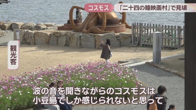 「波の音を聞きながらのコスモスは小豆島でしか感じられないかなと思って、すごく感動しています」