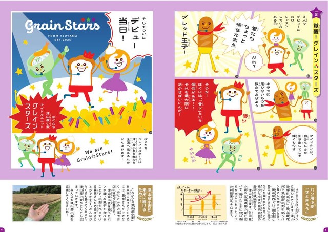JA晴れの国岡山が事務局を務める津山産小麦生産普及連絡協議会は、小学生に津山産小麦について興味を持ってもらおうと、絵本「かがやけ!グレインスターズ~最高のアイドルになるまで~」を作成しました。