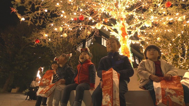 8日、岡山市北区の杜の街グレースで両備ホールディングスが、クリスマスのイルミネーション約4万7000個を点灯しました。