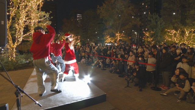 点灯式では、サンタクロース姿でダンスも披露され、一足早いクリスマスムードです。
