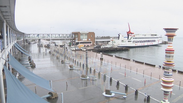 会期中は、多くの人でにぎわった高松港もあいにくの雨とあって人影はまばらでした。フェリー各社によりますと、ピーク時には積み残しも出ていた島へ向かうフェリーも、9日午前の便の乗船率は3割~6割ほどだったということです。