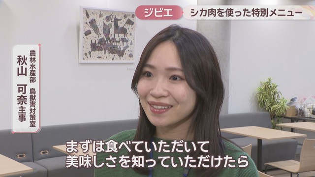 岡山県内で捕獲されたシカを食用肉として活用しようと、岡山県庁の食堂に10日、特別メニューが登場しました。