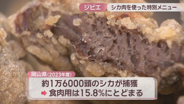 岡山県では2023年度に約1万6000頭のシカが捕獲されましたが、食肉用に加工されたのは15.8%にとどまっています。