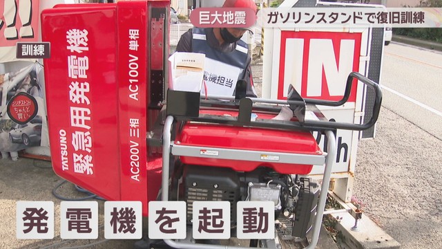 高松市のガソリンスタンドで、巨大地震などで停電した時に発電機で復旧する訓練が11日、行われました。