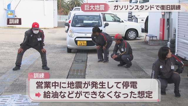 高松市でガソリンスタンドを運営する会社の従業員ら15人が訓練に参加しました。営業中に南海トラフ地震が発生し、停電で給油などができなくなった想定です。