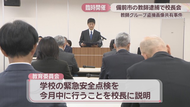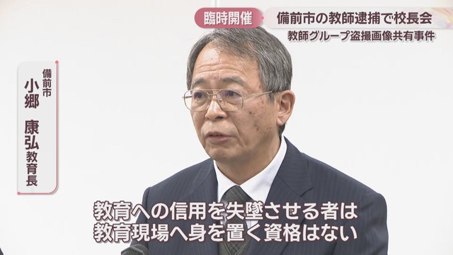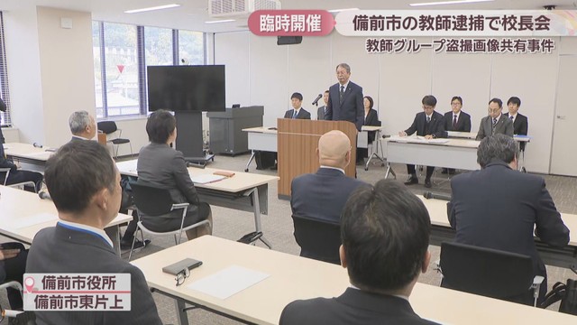 教師によるSNSグループが女子児童の盗撮画像を共有したとされる事件で備前市立小学校の教師が逮捕・送検されました。これを受け、備前市教育委員会は臨時の校長会を開きました。
