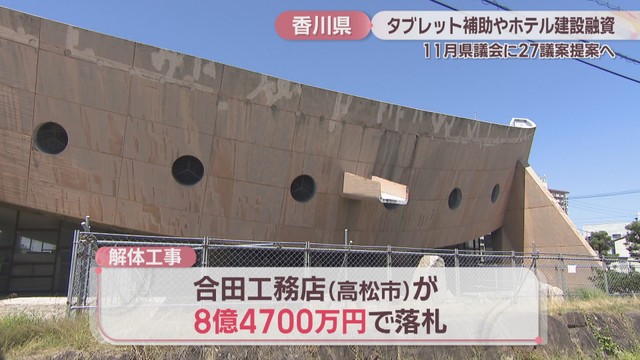 また、旧香川県立体育館の解体工事の請負契約を結ぶための議案も提案します。高松市の合田工務店が8億4700万円で落札しています。