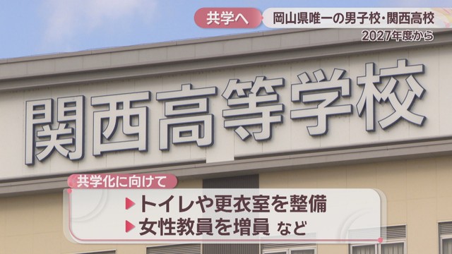 学校法人関西学園は17日、岡山市の関西高校を2027年度から段階的に共学化すると発表しました。関西高校は現在、岡山県では唯一の男子校です。