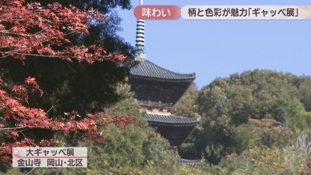 紅葉した山あいにたたずむ岡山市北区の金山寺。金山寺は毎年紅葉の時期に合わせてギャッベの展覧会を開いています。