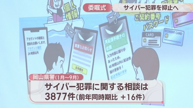 岡山県警によりますと、2025年1月から9月までの間、宅配業者を装った偽のショートメッセージ、SNSアカウントや証券口座の乗っ取りなどサイバー犯罪に関する相談が2024年の同じ時期より16件多い3877件ありました。