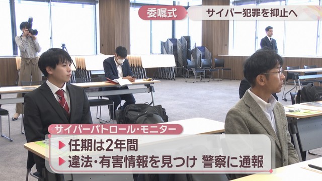 サイバー犯罪を抑止するため、岡山県警は17日、学生ら45人にインターネット上の違法行為などを見つけるボランティア活動を依頼しました。