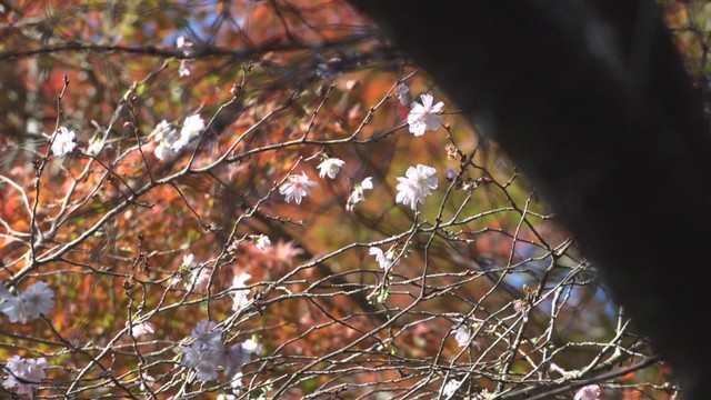 香川県の小豆島で、紅葉とこの時季に咲く十月桜が同時に楽しめます。