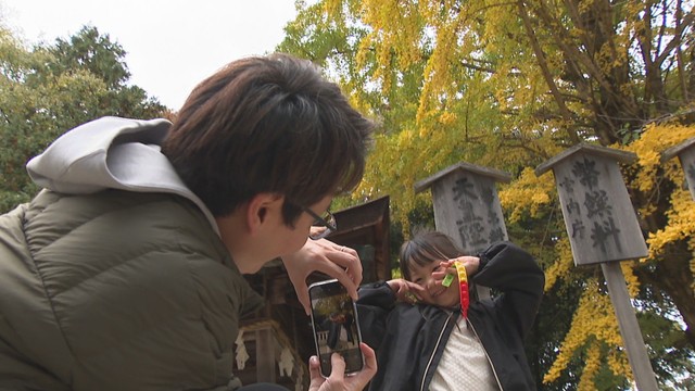 その前には写真を撮っている人たちが多くいました。皆さんが紅葉をどう撮っているのか聞いてみました!