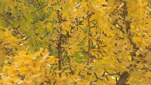お子さんに合わせて撮ると、よりイチョウの木が大きく見えていい感じですよね。