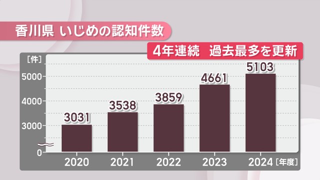 香川県の小中高校など285校を対象にした調査によると、2024年度は5103件と、前の年度より442件増え、4年連続で過去最多を更新しました。