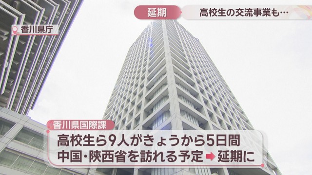 また、香川県国際課によると、香川県の高校生ら9人が交流事業として18日から5日間中国の陝西省を訪れる予定でしたが、延期になりました。16日に陝西省の担当者から派遣の延期を求められたということです。