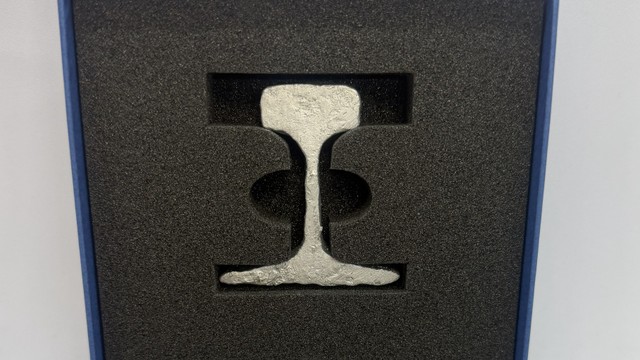 井原鉄道は工事の完了を記念し、レールの一部をカットした記念品を数量限定で販売します。専用のパッケージに入れ、1個2500円です。
