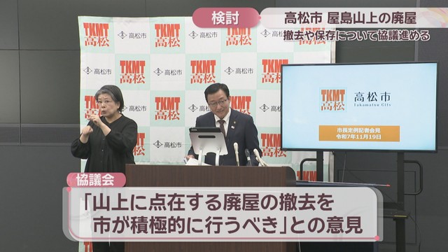 高松市の大西市長は19日、屋島山上にある複数の廃屋について今後、撤去も視野に関係者と話し合いを進める考えを示しました。