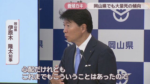 伊原木知事は楽観視はできないとしつつ、死んでいる多くは2年もののカキで、岡山県では1年ものが80%を占めるため、影響は限定的な可能性もあるとしています。