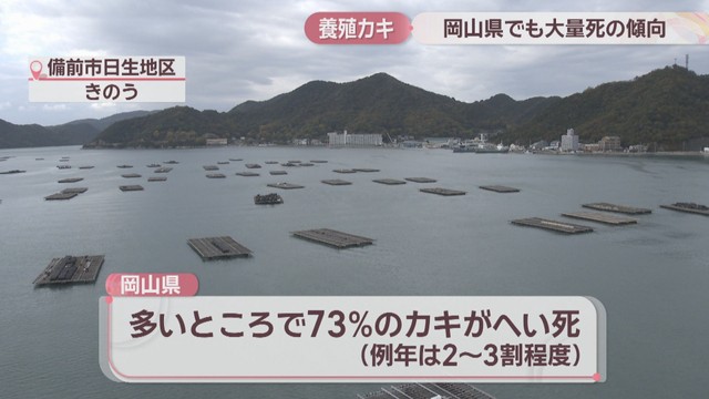 岡山県が県内5つの漁協で調べたところ、多いところで73%のカキが死んでいるということです。例年は20%~30%程度とされています。
