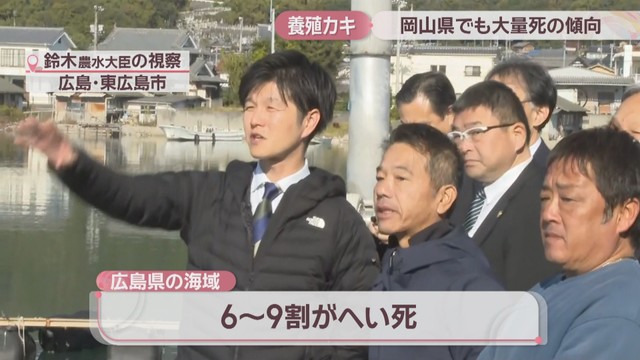 広島県の海域では60%~90%が死んでいて、19日朝、鈴木農林水産大臣が現地を視察しました。