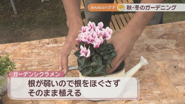 その他にも小さな花がかわいくて、寄せ植えにも適したアリッサム、ベランダや玄関などに飾れるガーデンシクラメンなどがお薦めということです。