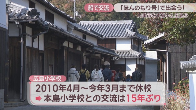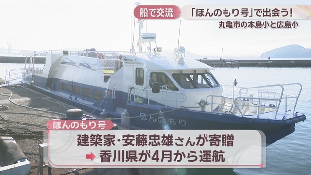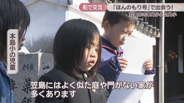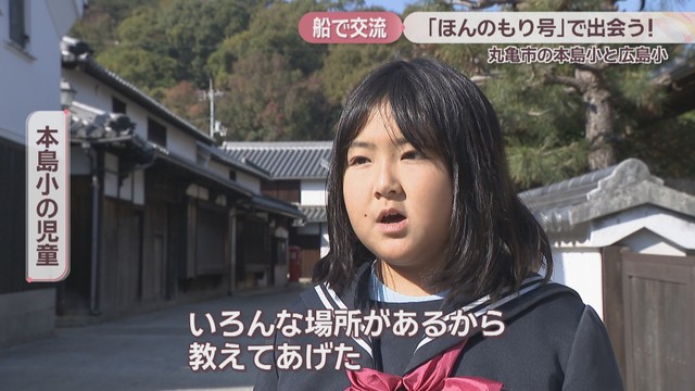 香川県丸亀市の本島と広島の子どもたちが20日、こども図書館船「ほんのもり号」に一緒に乗って交流を深めました。