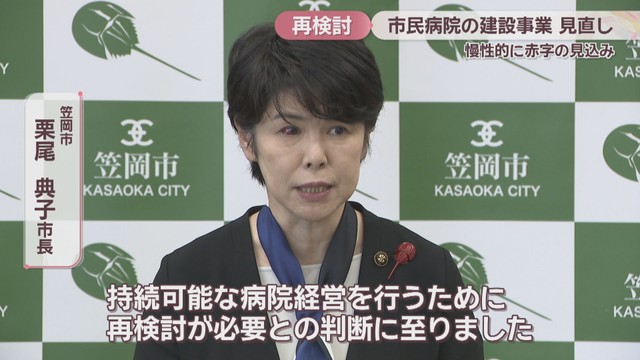 岡山県笠岡市が建設予定の新しい市民病院についてです。現在の計画のままだと慢性的な赤字となることが分かったとして、市は事業をいったん中断し病床数などの基本計画を見直すことを明らかにしました。