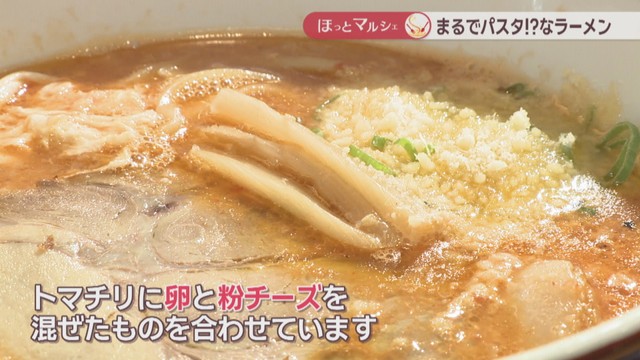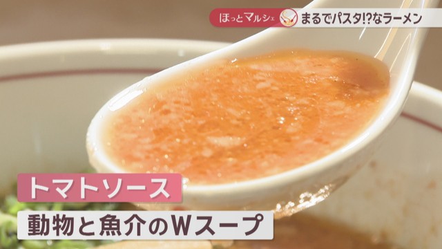 「スープに豚と鶏、魚介を使っていて、そのスープにトマトのソースを足したものになります。洋と中華が混ざったようなラーメンになっています」