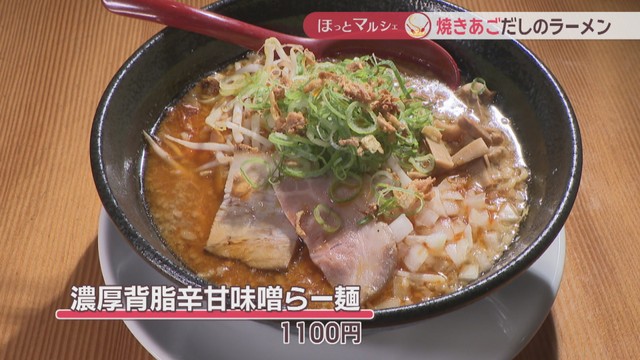 さらにもう一品。「焼きあご」のだしとみそがコラボしたラーメン(1100円)です。