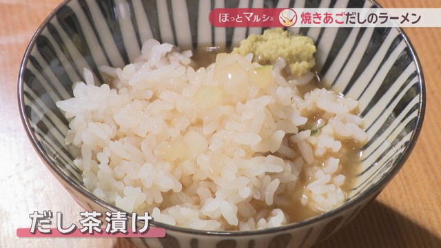 残ったスープはセットの白ご飯にかけてだし茶漬けで味わいます。