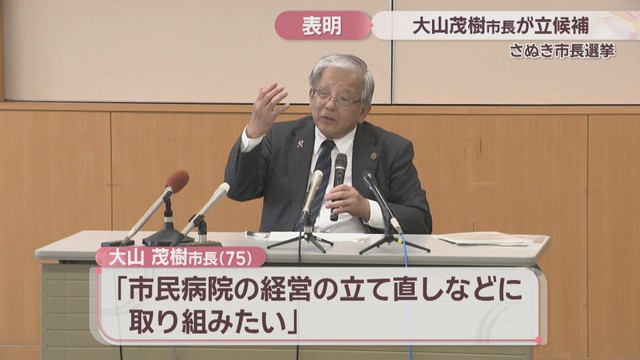 2026年5月に任期満了をむかえる香川県さぬき市長選挙に5期目の現職、大山茂樹市長が21日、立候補を表明しました。